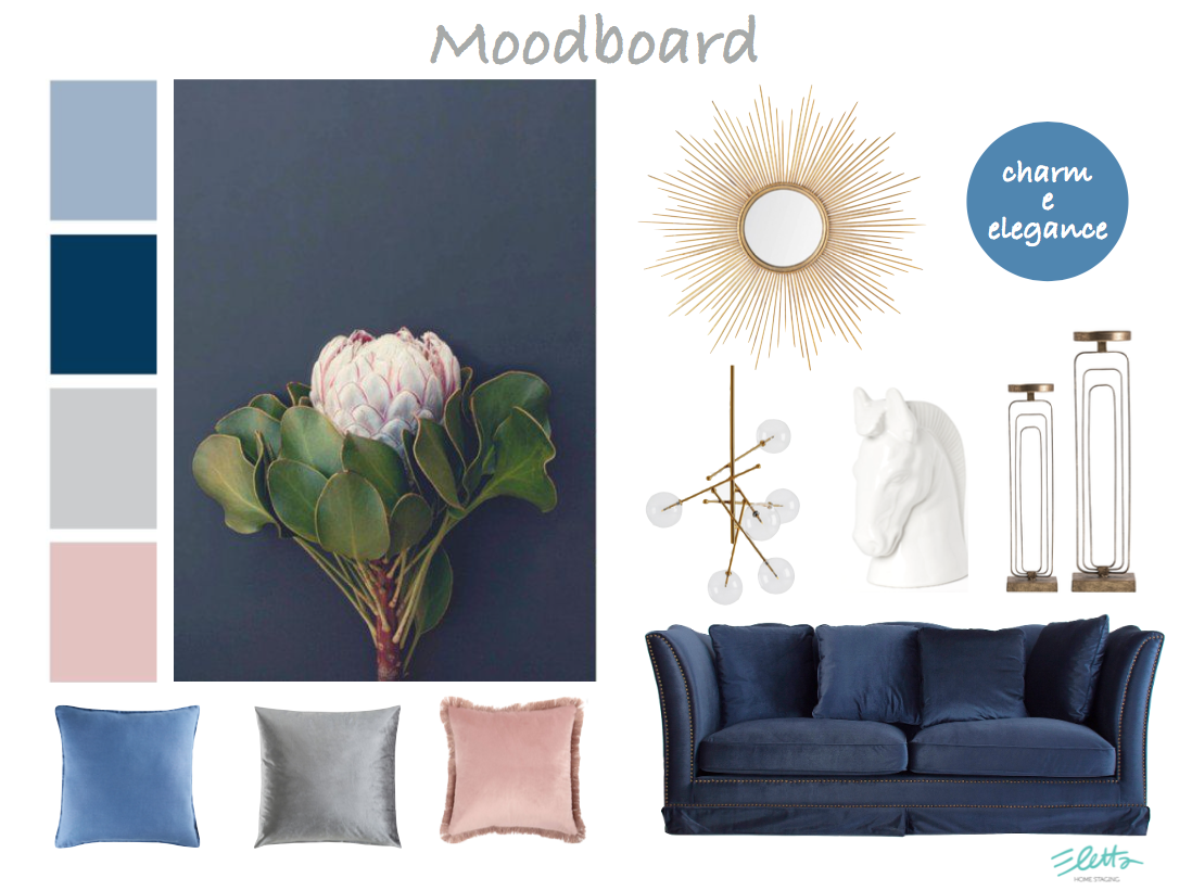 My winter mood board combines blue with gray and old pink, other shades I particularly love. A highly refined color palette, in which the harmony between warm and cold tones gives the whole a regal note.